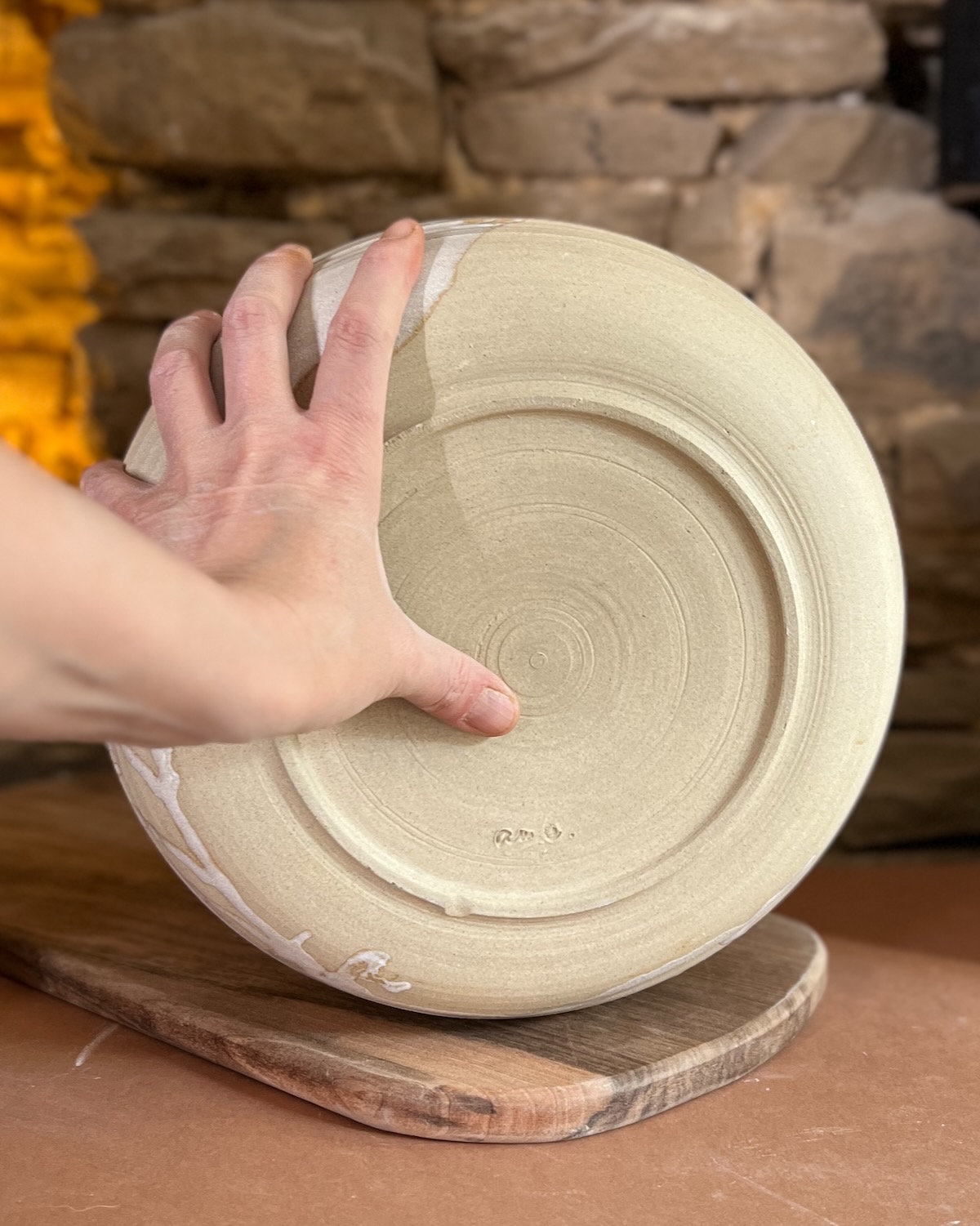 Fabrication & matière : saladier en grès belge fabriquée au tour de potier à Gesves en région namuroise (Belgique)